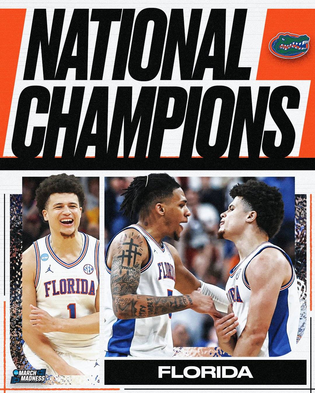 【搜狐体育战报】北京时间4月8日,2025年度NCAA全美锦标赛,也就是俗称的“疯狂三月”上演最终的决赛大戏,交手的双方是休斯顿大学和佛罗里达大学。全场打完,佛罗里达大学65-63险胜休斯顿大学,收获了队史第三座NCAA冠军奖杯,此前,他们曾在2006和2007年蝉联过冠军。
